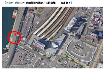 【函館駅 乗降場所 函館若松町観光バス駐車場 ※高架下】