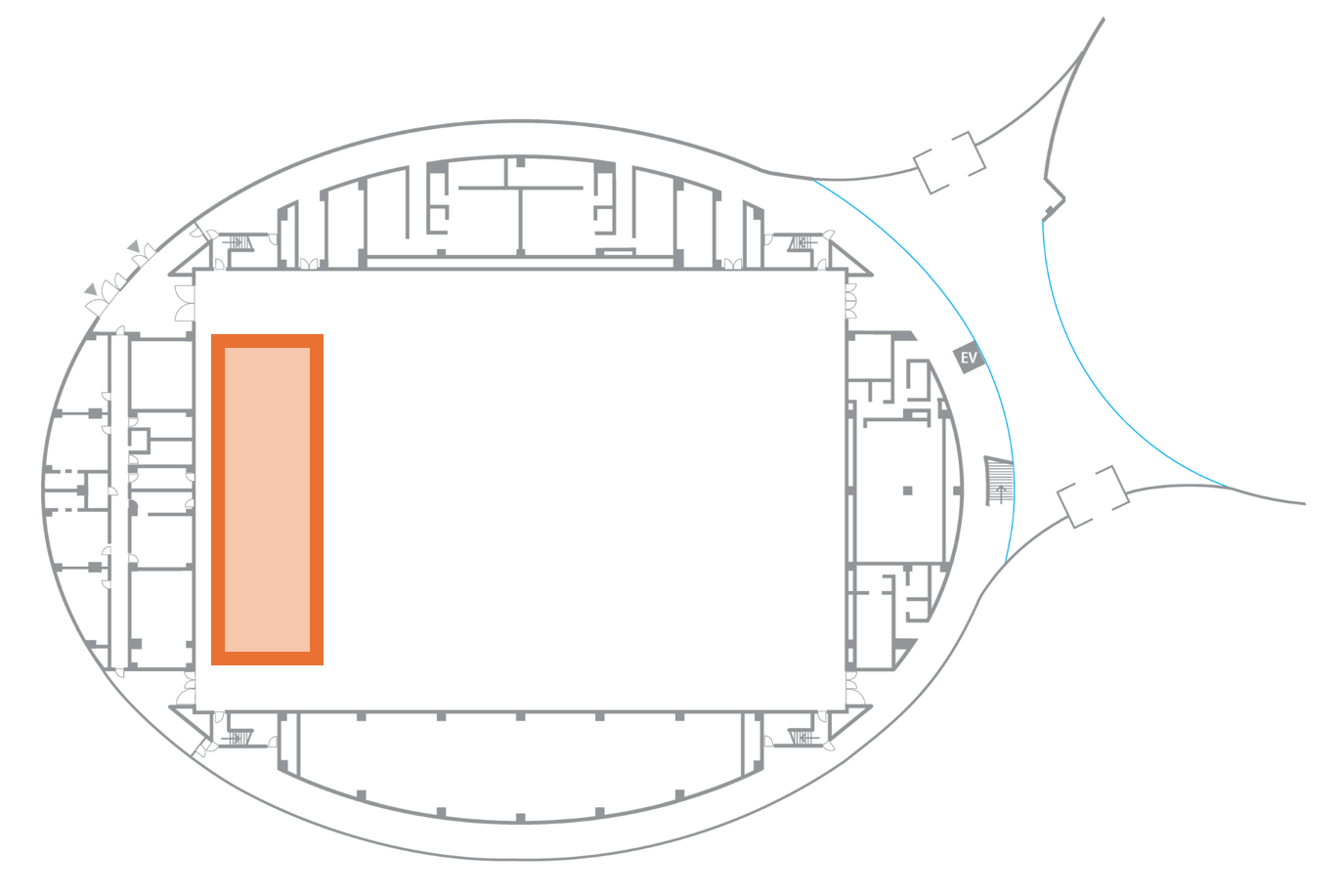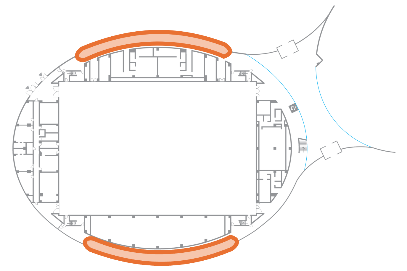 個室会議室へはメインアリーナ内を通って移動するようお願いします。